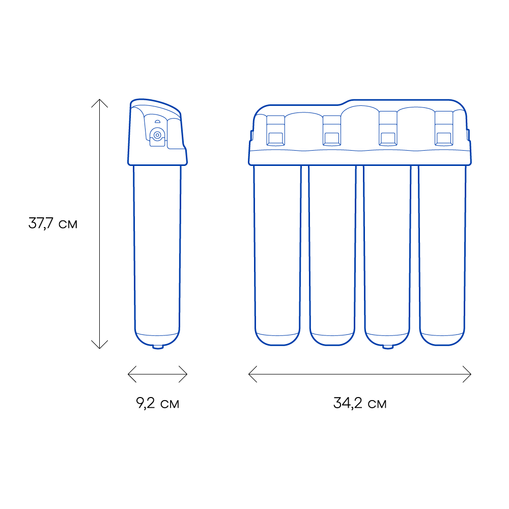 Обратноосмотические фильтры используются для абсолютной защиты от накипи, т.к. полностью устраняют соли жесткости из воды.нетЧисло ступеней очисткиКартриджи последовательно очищают воду и от видимых примесей, и от растворенных. Первый картридж задерживает более крупные частицы, а каждый последующий - более мелкие. Чем больше ступеней - тем лучше фильтр очистит воду: поймает более мелкие видимые частицы ржавчины, песка и ила, успеет захватить из воды максимум растворенных примесей - хлора, нитратов, тяжелых металлов и других.4МинерализацияПроисходит после финишной очистки воды. Необходима прежде всего в фильтре обратного осмоса, поскольку такой фильтр полностью устраняет из воды все примеси, в том числе минералы. Минералы добавляются в оптимальной концентрации - для пользы и привычного вкуса воды.нетПостфильтрацияФинальный этап очистки воды: картриджи постфильтрации удаляют самые мелкие механические частицы и кондиционируют воду, придавая ей более приятный вкус.нетНакопительная емкостьОбычно нужна в фильтрах обратного осмоса. Глубокая фильтрация требует времени. Чтобы Вам не приходилось ждать, пока вода наберется в чайник или кастрюлю, почти во всех моделях используется накопительный бак для чистой воды или другая емкость. В стандартном фильтре обратного осмоса под мойку воды в баке достаточно для семьи из 5-6 человек.нетФильтрующий модуль в комплектедаОтдельный крандаДавление в водопроводе не более, атмМаксимальное давление воды на входе в систему, при котором возможна стабильная работа фильтра.6,5Ширина, смОбратите внимание на габариты фильтра, и измерьте, сколько свободного пространства в предполагаемом месте установки.37,7Глубина, смОбратите внимание на габариты фильтра, и измерьте, сколько свободного пространства в предполагаемом месте установки.9,2Защита корпуса от гидроударовдаИсходная водаЖесткая вода – вода с избытком минеральных солей. От нее появляется накипь в чайнике, известковый налет на сантехнике и разводы на посуде. Мягкая вода – та, в которой мало минеральных солей. Нет накипи в чайнике и разводов на посуде. Фильтры для мутной воды и фильтры от ржавчины, как правило, имеют несколько стадий очистки и дополнительный полипропиленовый картридж. Он задерживает механические частицы ила, песка и ржавчины и защищает картриджи более глубокой очистки.жёсткаяУстраняет мутностьМутность водопроводной воды может говорить о том, что в ней много мелких механических частиц. Важно, чтобы в фильтре был установлен дополнительные картридж механической предфильтрации (полипропиленовый) - он продлит жизнь остальным картриджам более тонкой очистки.даУстраняет ржавчину, бурый осадокЛюбой фильтр под мойку удалит из воды крупные и мелкие частицы ржавчины. Некоторые фильтры имеют повышенный ресурс по железу: они дольше служат в такой воде, поскольку лучше подходят для удаления из воды железа и механических частиц ржавчины.нетЗащита от бактерийВсе проточные фильтры в той или иной степени защищают от бактерий. Например, добавление серебра препятствует их размножению. Это стандартная степень защиты. Если в семье есть дети, пожилые люди или аллергики, воду рекомендуется обеззараживать, то есть полностью удалять микроорганизмы. Повышенную защиту от бактерий дают фильтры с половолоконной мембраной. Это пучок тру