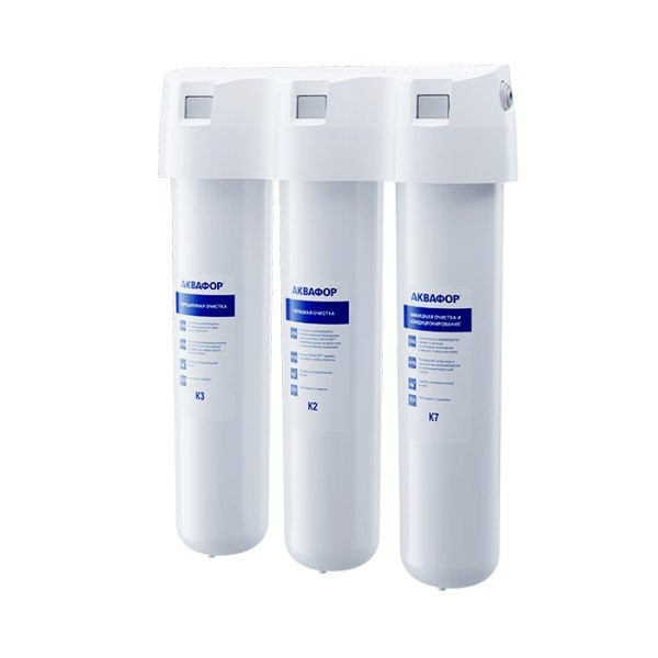 Обратноосмотические фильтры используются для абсолютной защиты от накипи, т.к. полностью устраняют соли жесткости из воды.нетЧисло ступеней очисткиКартриджи последовательно очищают воду и от видимых примесей, и от растворенных. Первый картридж задерживает более крупные частицы, а каждый последующий - более мелкие. Чем больше ступеней - тем лучше фильтр очистит воду: поймает более мелкие видимые частицы ржавчины, песка и ила, успеет захватить из воды максимум растворенных примесей - хлора, нитратов, тяжелых металлов и других.3МинерализацияПроисходит после финишной очистки воды. Необходима прежде всего в фильтре обратного осмоса, поскольку такой фильтр полностью устраняет из воды все примеси, в том числе минералы. Минералы добавляются в оптимальной концентрации - для пользы и привычного вкуса воды.нетПостфильтрацияФинальный этап очистки воды: картриджи постфильтрации удаляют самые мелкие механические частицы и кондиционируют воду, придавая ей более приятный вкус.нетНакопительная емкостьОбычно нужна в фильтрах обратного осмоса. Глубокая фильтрация требует времени. Чтобы Вам не приходилось ждать, пока вода наберется в чайник или кастрюлю, почти во всех моделях используется накопительный бак для чистой воды или другая емкость. В стандартном фильтре обратного осмоса под мойку воды в баке достаточно для семьи из 5-6 человек.нетФильтрующий модуль в комплектедаОтдельный крандаДавление в водопроводе не более, атмМаксимальное давление воды на входе в систему, при котором возможна стабильная работа фильтра.6,5Ширина, смОбратите внимание на габариты фильтра, и измерьте, сколько свободного пространства в предполагаемом месте установки.26,0Глубина, смОбратите внимание на габариты фильтра, и измерьте, сколько свободного пространства в предполагаемом месте установки.9,0Защита корпуса от гидроударовдаИсходная водаЖесткая вода – вода с избытком минеральных солей. От нее появляется накипь в чайнике, известковый налет на сантехнике и разводы на посуде. Мягкая вода – та, в которой мало минеральных солей. Нет накипи в чайнике и разводов на посуде. Фильтры для мутной воды и фильтры от ржавчины, как правило, имеют несколько стадий очистки и дополнительный полипропиленовый картридж. Он задерживает механические частицы ила, песка и ржавчины и защищает картриджи более глубокой очистки.мягкаяУстраняет мутностьМутность водопроводной воды может говорить о том, что в ней много мелких механических частиц. Важно, чтобы в фильтре был установлен дополнительные картридж механической предфильтрации (полипропиленовый) - он продлит жизнь остальным картриджам более тонкой очистки.нетУстраняет ржавчину, бурый осадокЛюбой фильтр под мойку удалит из воды крупные и мелкие частицы ржавчины. Некоторые фильтры имеют повышенный ресурс по железу: они дольше служат в такой воде, поскольку лучше подходят для удаления из воды железа и механических частиц ржавчины.нетЗащита от бактерийВсе проточные фильтры в той или иной степени защищают от бактерий. Например, добавление серебра препятствует их размножению. Это стандартная степень защиты. Если в семье есть дети, пожилые люди или аллергики, воду рекомендуется обеззараживать, то есть полностью удалять микроорганизмы. Повышенную защиту от бактерий дают фильтры с половолоконной мембраной. Это пучок тру